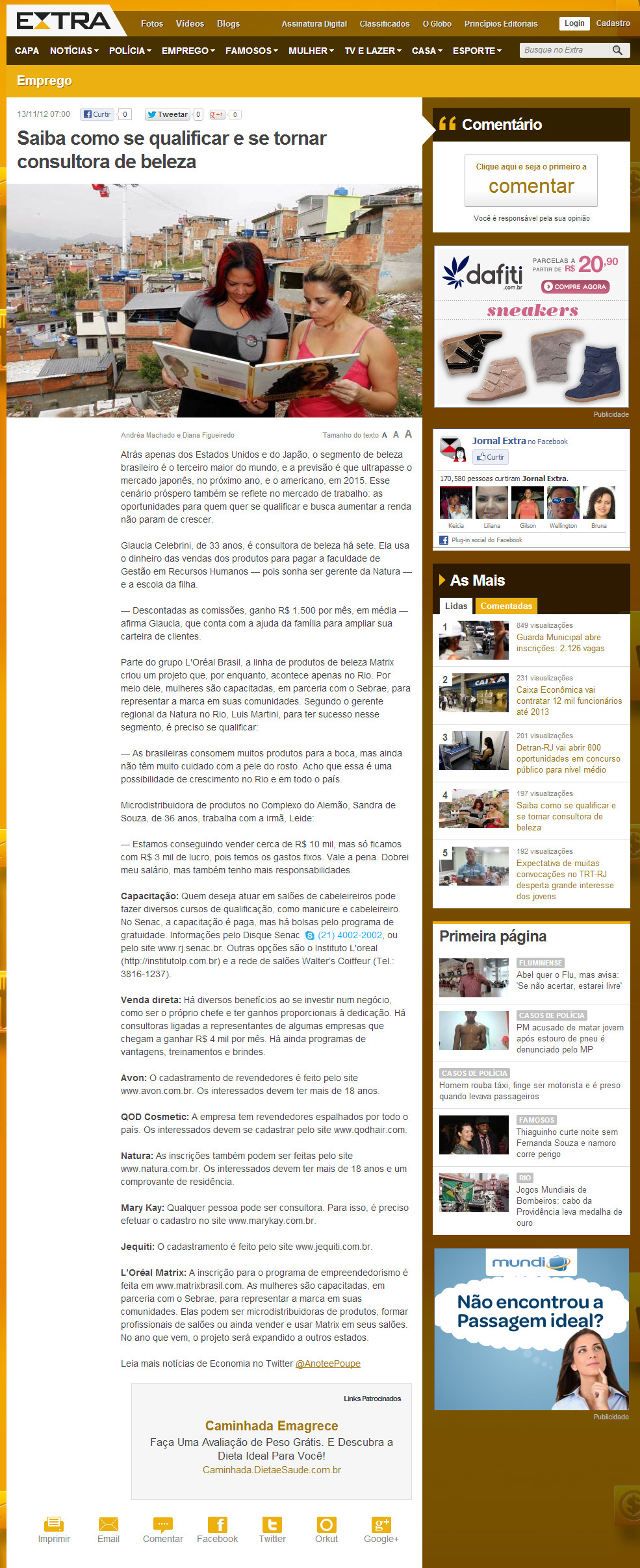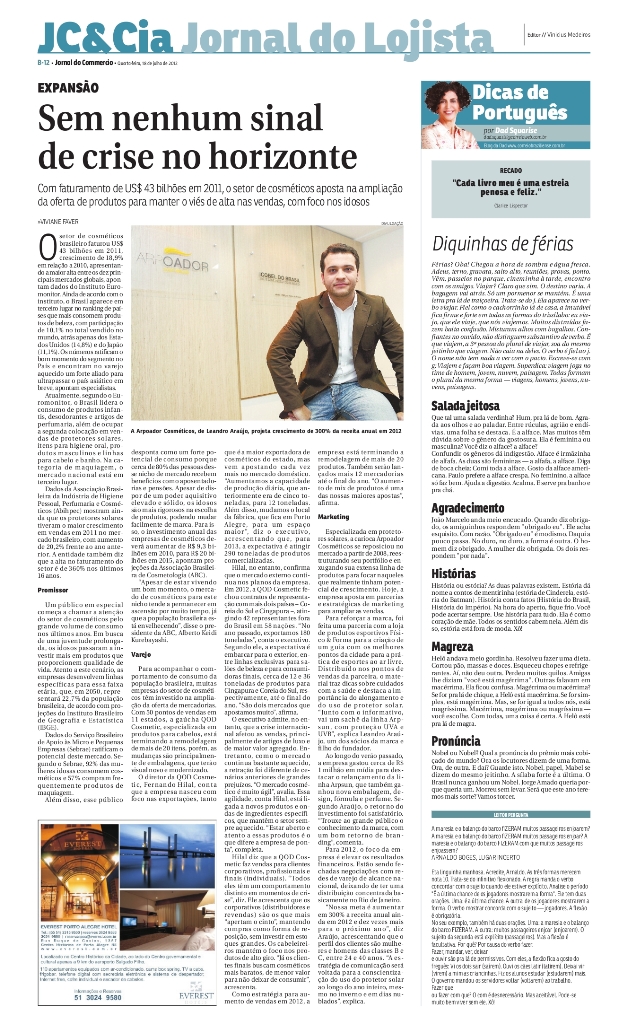 Algumas das publicações obtidas a partir de trabalho de assessoria de imprensa, desenvolvido para a QOD Cosmetic, na agência Wcd.